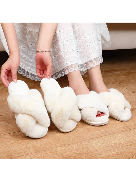 2Pair Womens Fuzzy Fluffy Slippers - Cozy, Soft, Comfy, Relax Fluffy Slippers, Cross Band, Open Toe, Non-Slip Womens Slippers, Indoor and Outdoor Fluffy Slippers, Fuzzy Slippers